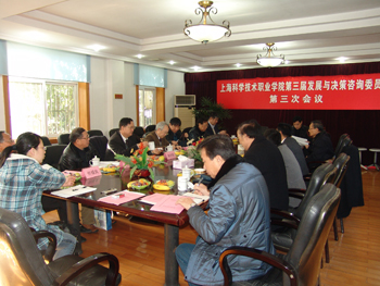 家有:学院发展与决策咨询委员会主任、教育部高职高专人才培养工作水平评估委员会主任杨应崧教授,华东师范大学职成教研究所所长石伟平教授,嘉定区组织部副部长、区编委主任朱明荣,上海市公安局治安总队副总队长孙廷华,上海市汽车维修行业协会副会长刘筱衡,上海民办教育协会秘书长忻福良,上海计算机软件技术开发中心主任、上海市软件行业协会常务副会长宗宇伟。党委书记、院长庄顺根,常务副院长马德垺及各系主任与会。