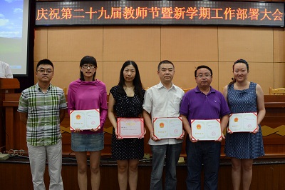 会上首先举行“申嘉奖教金”颁奖仪式,申嘉教育发展有限公司总经理、学院副院长王云飞宣布获奖名单并宣读颁奖词。全场掌声雷动,朱建新董事长、袁晓军董事、董大奎副院长为庄顺根、唐晓丹、李红、孙鸿平、袁圣东、金之杰等6名获奖教师颁奖。