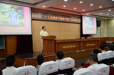 随后举行的是“2012—2013学年度各类先进表彰”仪式,近30名一年来在教学、科研、管理、服务等方面表现突出的教职工受到表彰。朱建新董事长还为满三十年教龄的教职工颁发了荣誉证书,并作了精彩演讲。他说:“受表彰的先进教师身上所体现的无私奉献、开拓创新、尽职尽责的精神和行动都值得我们学习,他们是学院办学54年,改制10年来,特别是重点专业建设和创建特色高职工作中与时俱进,表现突出的典范