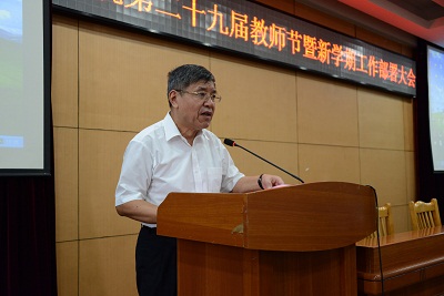 力的带头人”、“高职教育理念学习意识不强”、“学校发展目标和顶层设计缺少目标和保障体系的支撑”、“管理制度的前瞻性和先进性不强”、“校企合作数量不足、内涵不突出、技术服务能力弱”、“‘三校联动’的办学体制加重了教学资源的紧张”等六方面。庄顺根院长希望全体教职工通过反复学习、讨论,消化、吸收,理解专家意见的实质性要求,为后续的整改工作、深化内涵建设以及推进特色高职院校建设提供指导。新学年伊始,他勉励广大教职员工始终坚持“德育为先,育人为本,爱教乐教”,以受表彰的优秀教职工为榜样,以主人翁的责任感,以饱满的热情投入创建特色高职的建设中。