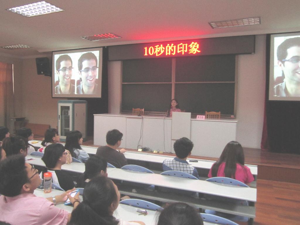 “第一印象很有用,十分之一秒的相处往往就能决定你在别人心目中的印象”。朱匀先老师以其丰富的生活阅历及工作经历,向现场的同学们介绍了诸多能给人留下好印象的技巧,比如:你要学会微笑,而且这种笑需要发自内心的。她通过ppt向同学们展示了“笑”的不同含义,并且比较了“笑”的异同,提醒同学们在与人交往过程中要以诚相待。再如:你不能做“语言杀手”,在介绍这一技巧时,她举了一个自己身边的鲜活例子,她的一位亲戚在交友过程中始终喜欢用“嗯”、“哦”、“奥”等字结束交谈,以至于不能与他人进行长时间交谈,无法深入了解对方情况,更不能敞开自己的心扉,更好的展示自己。说到这一点,台下的同学们若有感触的点点头,这似乎正说到了大家的软肋。朱老师随即鼓励大家要多说“废话”,如:“今天的天气真好”、“你吃过饭了吗?”……,这些看似“废话”的话往往能够引出更多的话题,更容易增进彼此间的友谊。
