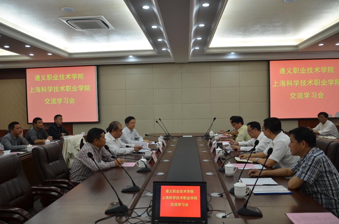 本学期以来,我院对口帮扶遵义职业技术学院项目建设有序推进。近日,遵义职业技术学院党委书记李凌,党委副书记、院长鞠洪,党委副书记、纪委书记韩克义率该院考察团一行16人来我院学习交流。10月21日上午,在学院第二会议室举行了两校对口帮扶工作交流会,党委书记庄顺根、副院长王云飞、党委副书记周财宝及学院机电工程系、学生处、后勤保卫处等负责人出席交流会。庄顺根书记首先对李凌书记、鞠洪院长一行表示热烈欢迎,并对暑期及开学以来的对口帮扶工作作了阶段性总结,对下一阶段的项目进展进行了规划,提出我院的工作安排和实施步骤。王云飞副院长谈到了9月初他率团访遵义职院新建校区的感受,并对下一阶段协助该校进行“安全防范”系统构建、建立“社会主义核心价值体系培育基地”、开展合作科研项目、建设“电子商务员”、“助理电子商务师”培训点的准备工作等,提出指导性意见。随后,两校学生口、后勤保卫处负责人和相关教师进行了深入交流。考察团一行还参观了我院机电、通信实训中心,及学院新建的“大学生联合创新中心”,遵义职院领导还亲切看望了在我院进行实习交流的30名该校学生。当日下午,上海市教委高教处副处长赵坚、处级调研员徐国良来到我院,就对口帮扶工作进行调研和指导。赵坚、徐国良对对口帮扶工作开展以来所取得的实质性进展表示肯定和赞许,并对下一阶段项目的推进提出指示,会议由常务副院长董大奎主持。