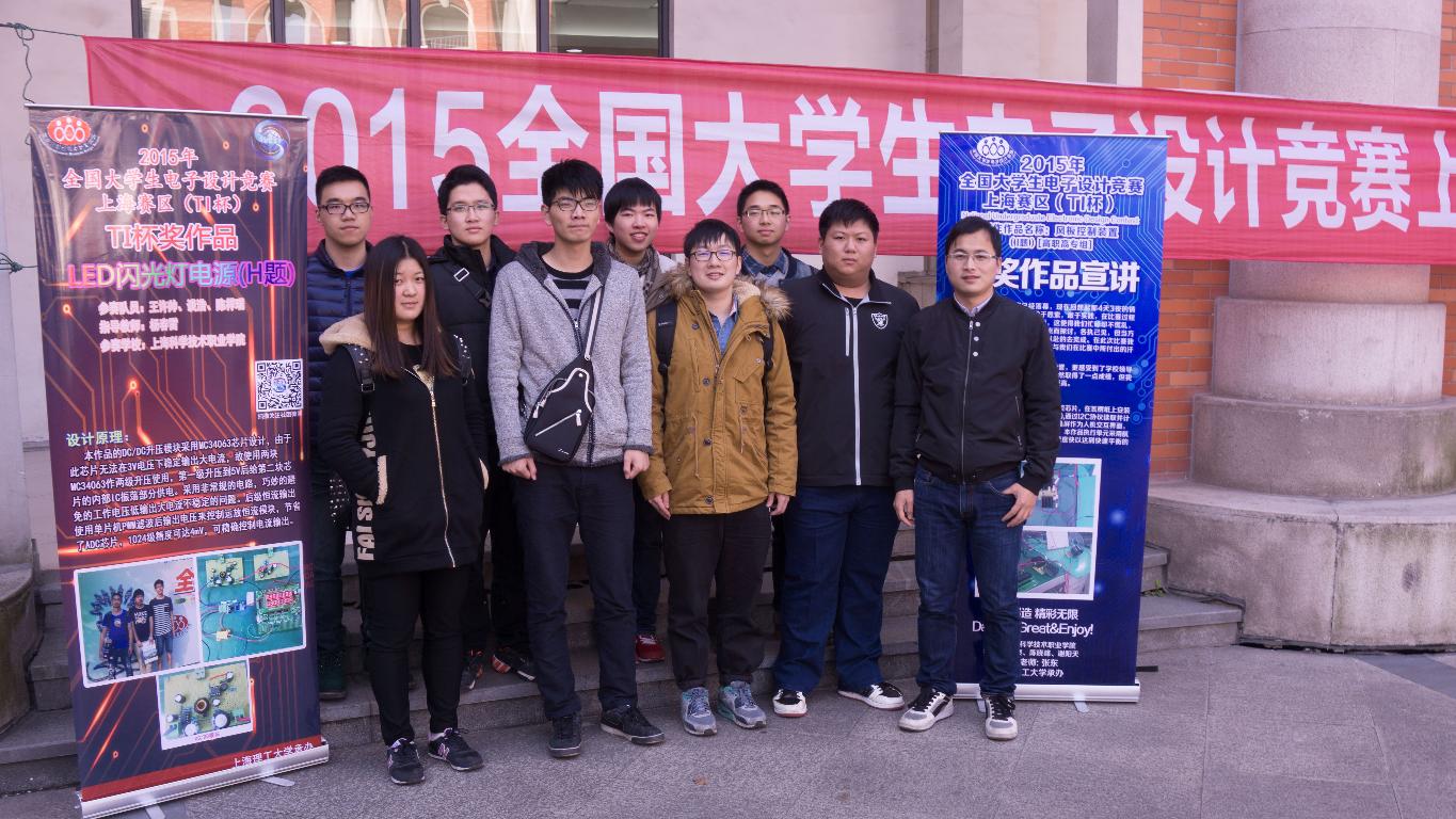 我院电子制作社于今年3月份就开始组织学生报名参赛工作,经过了六个多月的培训,最后筛选出6支参赛队。通过9月份四天三夜的激烈角逐,我院通信与电子信息系汪忻耀、金超然等同学组成的两支参赛队获得本次大赛上海赛区二等奖;瞿康辰、王许帅同学等同学组成的两支参赛队获得本次大赛上海赛区一等奖,王许帅同学队伍同时获得本次大赛TI杯(特等奖),这是我院继2013年摘取TI杯(特等奖)后又一次夺冠。通信与电子信息系杨春雷老师被评为优秀指导教师,学院教务处也获得赛区优秀组织奖。