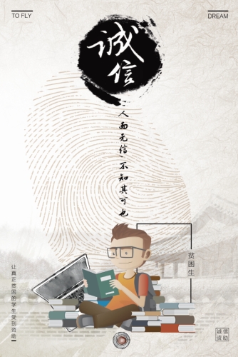 为进一步广泛宣传国家与学校的学生资助政策,解除家庭经济困难学生上学的后顾之忧,让困难学生了解受助学生的权利和义务,坚守诚实守信、恪守承诺的做人品行,学生资助管理中心于9月开展了“让诚信助飞青春的梦想”诚信宣传画征集评选活动。