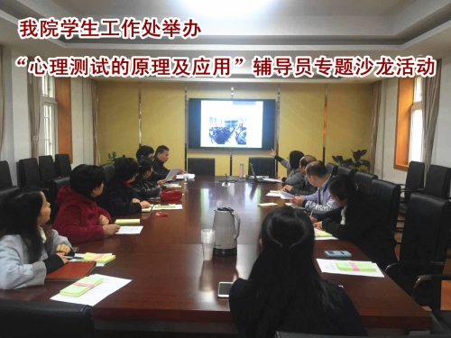 11月23日,学生工作处举办以“心理测试的原理及应用”为主题的辅导员沙龙活动,16级各新生辅导员参加了本次活动。