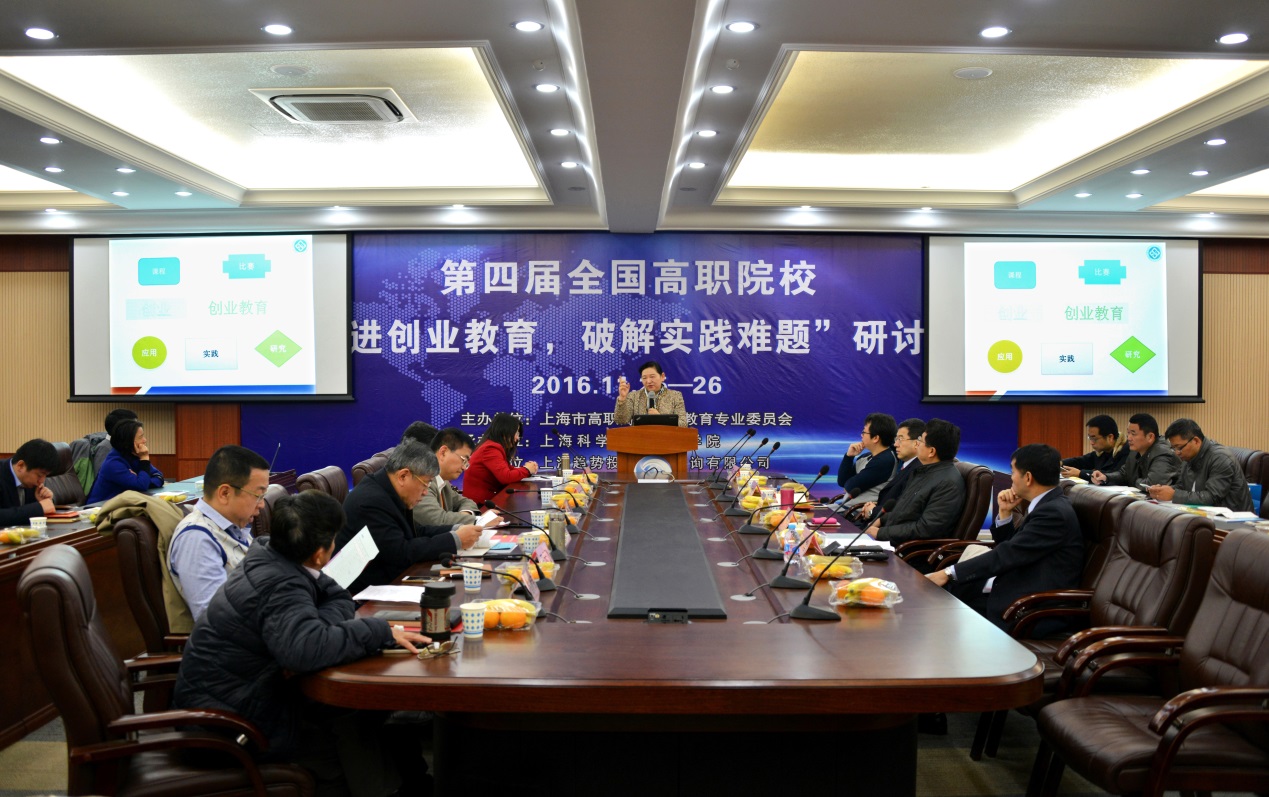 2016年11月25日至26日,第四届全国高职院校“推进创业教育,破解实践难题”研讨会在我院成功举办。我院董事长朱建新、上海立达职业技术学院党委书记张天启、上海海事职业技术学院院长孙琦、我院常务副院长董大奎、副院长王云飞、副院长周财宝、副院长韩芳等领导出席了本次研讨会。本次研讨会由韩芳副院长主持。