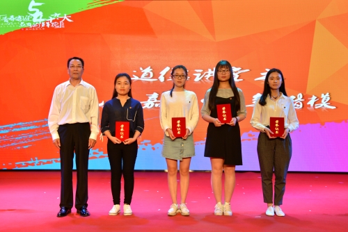 随后,在阵阵热烈的掌声中,庄顺根等领导分别为获奖个人、团体,及获得第五届学生田径运动会奖项的团体一一颁奖。