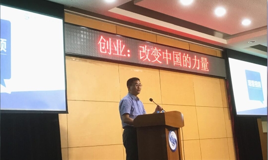 6月7日晚,我院“中国系列”课程“青年创业中国强”在新教五楼报告厅开讲。首场讲座“创业——改变中国的力量”由学院董事长朱建新老师主讲。讲座伊始,朱老师抛给了学生两个问题:“你想创业吗?”“为什么要创业?”学生积极回应,气氛热烈。接着,朱老师结合自身的成长、创业经历,讲述了追逐梦想,坚持创业的心路历程,回答了青年学子“为什么要创业”的主题。朱老师以“中国需要创业,中国需要创业精神”为主旨,通过典型案例的讲述与全体师生分享了两条创业精神启示:一条是“坚持信念,不放弃,不抛弃”;一条是“善于学习,不断创新,超越自己”。在讲述过程中朱老师还特别强调了企业作为创新主体的重要性。