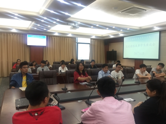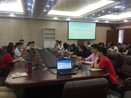 座谈会上,学院领导认真听取了各院系学生代表对目前开设的《毛泽东思想和中国特色社会主体理论体系概论》(以下简称毛概)、《思想道德修养和法律基础》(以下简称思修)及《形势政策》三门思政课程的意见与建议。同学们首先肯定了思政课任课教师具有较高敬业精神,以及为提高课程的生动性所采取的新颖的教学方法,同时也指出了在当前的课程教学中仍存在“教学形式比较单一,互动形式缺少”等问题,有部分学生代表提出希望通过校园广播、电视等途径获取更多时政信息。