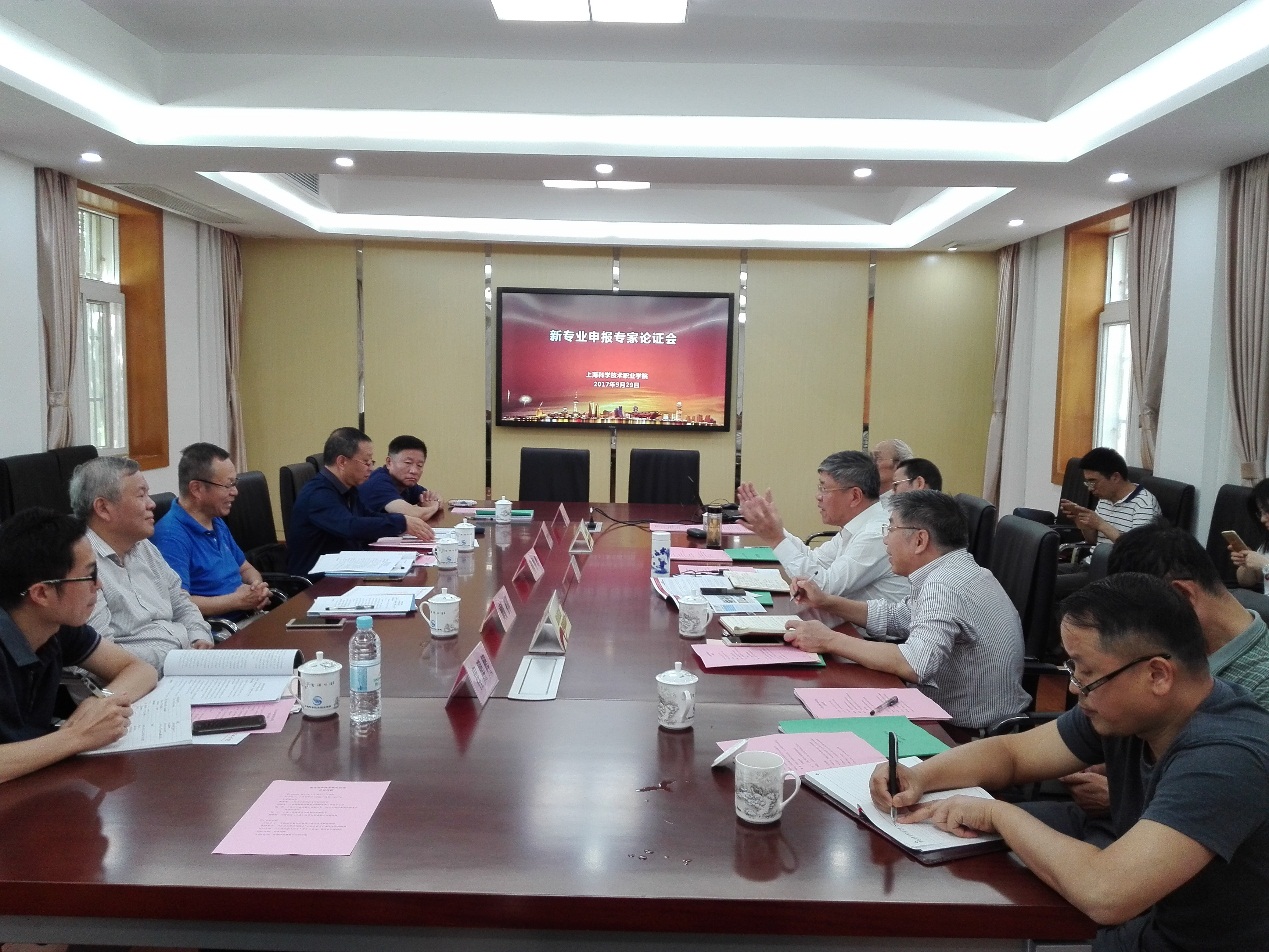 2017年9月29日,我院在第一会议室召开了新专业申报专家论证会。学院邀请了上海大学高等技术学院原院长鞠鲁粤,上海市高等职业教育发展研究中心常务副主任徐国良,上海市机器人行业协会会长、市人大财经委员会副主任戴柳,上海工程技术大学高职学院副院长胡宁和大唐邦彦(上海)信息技术有限公司总经理程熙熙等作为专家组成员出席本次会议。学院院长董大奎、院长助理徐华及教务处和相关院系的领导、专业负责老师等也出席了本次会议。