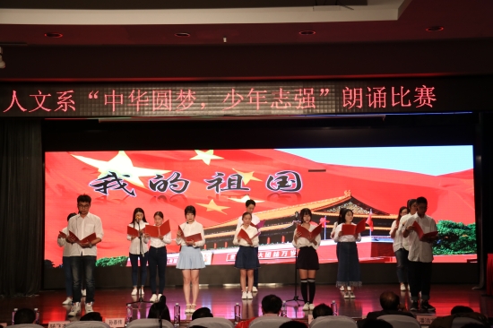 2017年10月18日,正值党的十九大隆重召开之际,人文与社会科学系于18:00在三楼报告厅举行“中华圆梦”朗诵比赛。系主任彭典贵,系书记沈斌,校团委、商贸管理学院分团委相关负责人以及部分老师和辅导员参加了本次比赛。