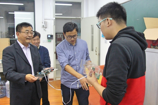10月25日晚,学院董事长朱建新在党委副书记周财宝的陪同下考察了工控精英社、电子制作社、启航社及电子商务社等学生专业社团,详细了解了社团组织的发展与现状以及遇到的问题和困难。