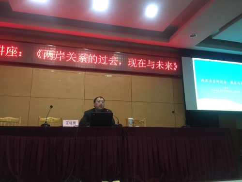 11月23日晚,我院邀请了上海交通大学台湾研究中心副主任王伟男博士,在五楼报告厅举办题为“两岸关系的过去、现状与未来”的专题报告。学院党委副书记、副院长周财宝亲临报告现场。来自各院系近三百名师生齐聚报告厅,认真聆听了王伟男博士的精彩报告。