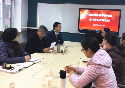 12月22日下午,学院院长董大奎、党委书记王云飞来到新成立的思想政治教学研究部,参加了第一次全体专职教师会议。会上,王云飞书记指出,学院高度重视思想政治工作,希望全体思政课教师不负众望,积极作为,早结硕果,王云飞结合自己在校内随堂听课及参加校外思政专项交流活动的经历,对全体思政教师的工作提出了几点希望:要保持良好精神风貌,积极弘扬主旋律;要多看目标想办法,争取教学工作有创新;争取主动参加交流学习,有效借鉴,促进教学改革实践。随后,院长董大奎教授讲到:希望新组织有新活力,尤其在教师开展教学研究工作方面,要结合信息化环境、结合学生当前的发展需要,主动探索教学方法创新,积极推进教学资源开发,加强教师队伍自身建设,努力实践思想政治理论课建设体系的创新发展。与会的教师们也积极地回应,分别就学院的教学管理、教师进修与晋升、科研成果推广等事项提出了自己的想法与建议。
