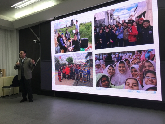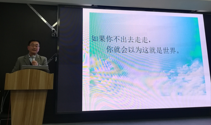 朱建新董事长为此次讲座做了精心的准备,特意从自己大量的旅行摄影作品中选取了极具代表性的图片,用风趣幽默的语言给同学们生动地介绍了在各国游历中的所见所闻,内容涉及自然景观、建筑、宗教、婚俗等各国文化以及旅游服务的体验。同时他还分享了旅行与人生的感悟,不时与同学们进行互动,现场气氛热烈,充满了欢乐。结束时朱建新董事长殷切希望同学们能“多走、多看、多思考”正如“在家里看到的永远是家,走出去看到的才是世界”所说那样,勉励同学们不做井底之蛙,开阔眼界,努力扩大自己的人生格局。