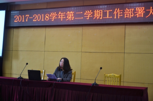 周财宝主要从思政工作、心理健康教育、日常管理三大块对分管的学生工作做了简要部署,并强调本学期学生工作将切实做到挖掘有效载体,抓好学生思政工作主阵地,切实突出育人价值;共青团工作主要是以“小青稞”线上线下宣传推广、团学组织建设、校园文化建设、社会实践等工作的大力开展为重点,强化思想内涵,繁荣校园文化,充分发挥高校共青团纽带作用;本学期武装部工作将坚持抓常态、促长效,努力完成各项常规工作;工会工作主要是以开展丰富多彩的文体活动,活跃教职工文化生活为重点,通过各类特色活动的开展,维护教职工切身利益,增强集体凝聚力;后勤保卫处工作通过对校园车辆的管理,食品安全的管控等措施进一步建设平安、和谐、美丽的校园环境。