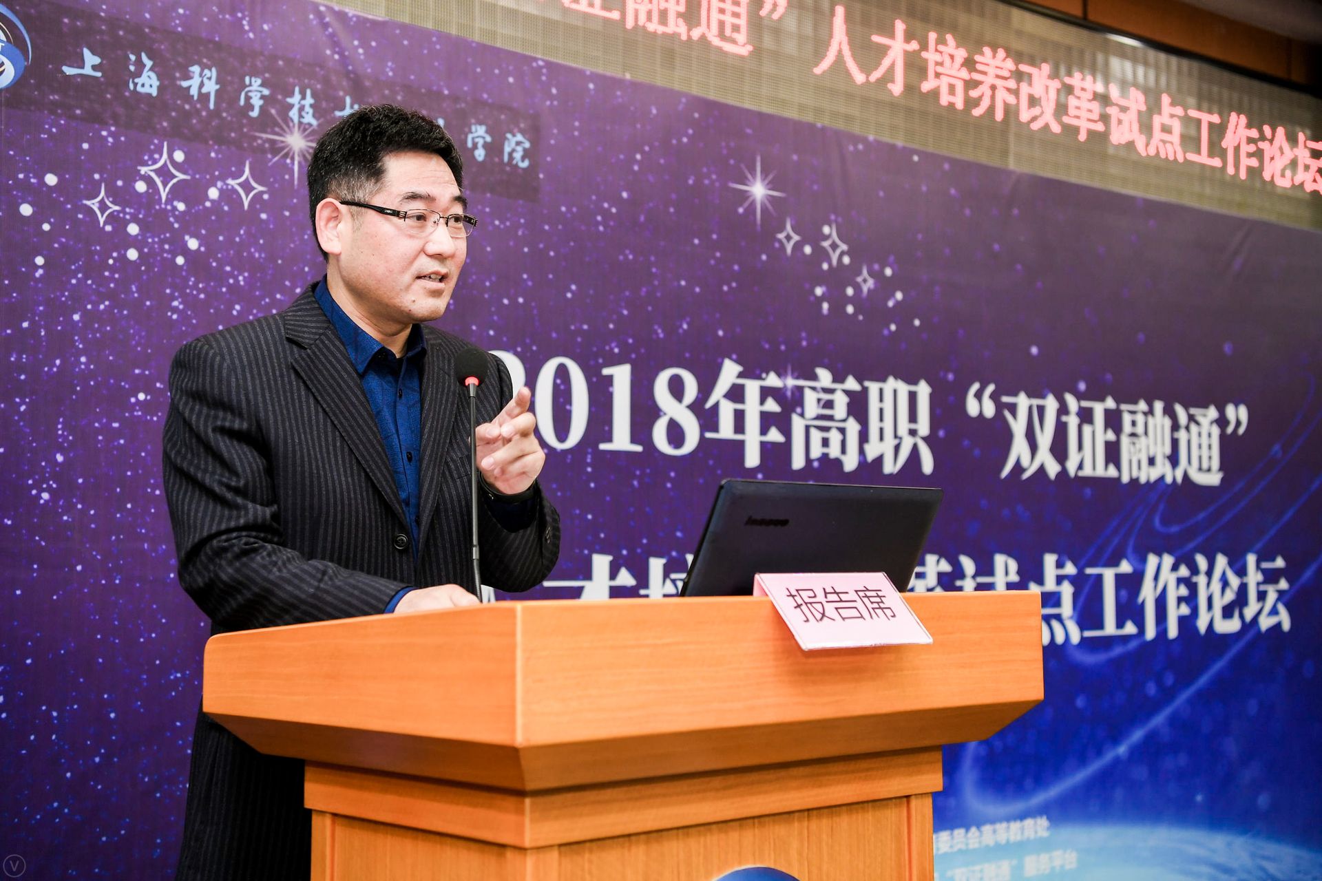 12月20日下午,2018年上海市“高职‘双证融通’人才培养改革试点工作论坛”在上海科学技术职业学院成功举行。本届论坛由上海市教委高教处、上海市高职“双证融通”服务平台主办,上海科学技术职业学院承办,上海市市职业技能鉴定中心作为支持单位。市教委高教处副处长赵坚、市职业技能鉴定中心主任孙兴旺出席论坛并发表讲话。全市二十五所高职院的校领导、教学管理部门负责人、试点专业(院系)负责人、骨干教师,以及行业、企业代表一百余人参加了本次论坛。上海科学技术职业学院部分“双证融通”试点专业学生也参加了本次活动。
