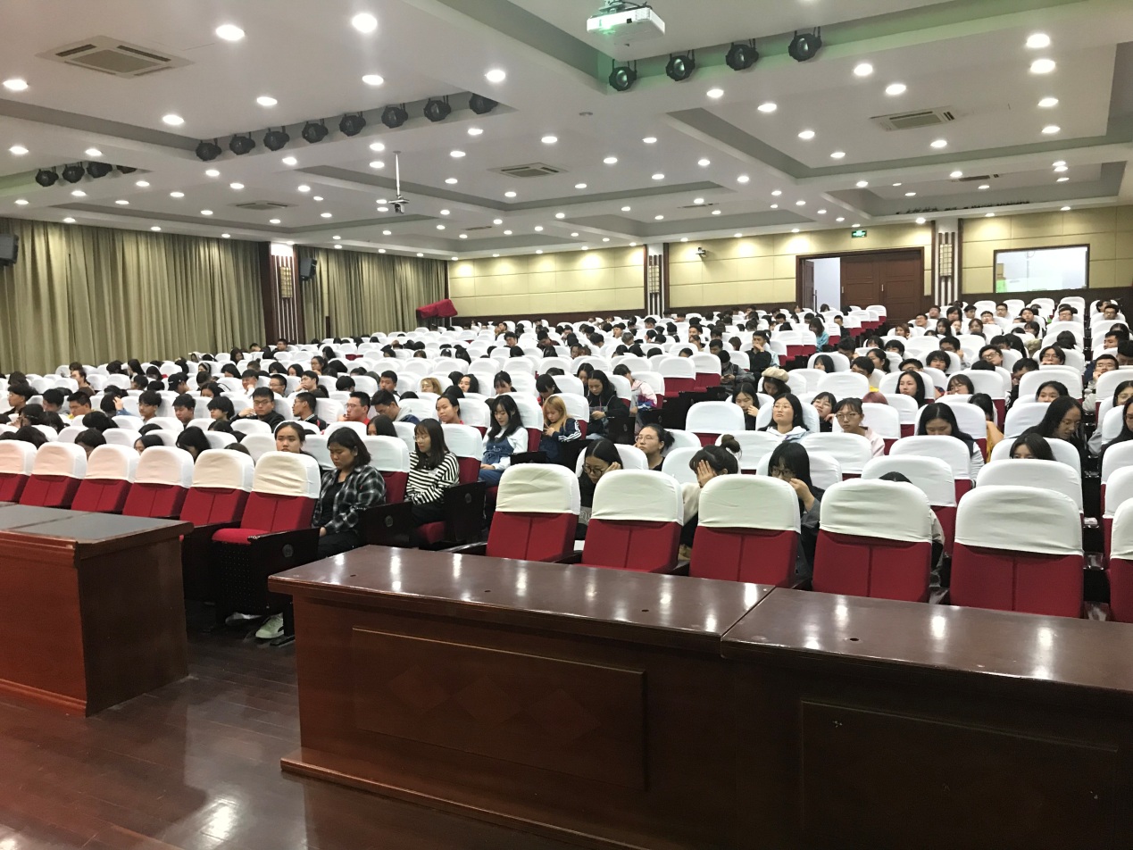 董燕琼老师以丰富的校园安保经历,通过一个个生动、真实的案例,就防火、防盗、诈骗、禁毒等校园安全隐患问题与同学们进行探讨,并对如何有效预防和应对校园安全隐患问题进行了深入讲解。董燕琼老师运用生动幽默的言语告诫同学们做好校园生活的有心人,在如何做好个人人身安全与财产安全的问题上,提出宝贵的意见和建议。最后也对同学们提出了两点要求:第一,遵纪守法,不犯、少犯错误;第二,自我保护,不受、少受侵犯。