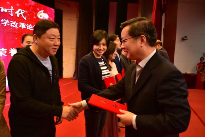 (上海市教育委员会副主任 毛丽娟为优秀合作企业颁发证书)