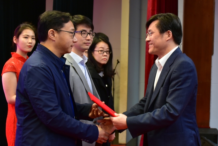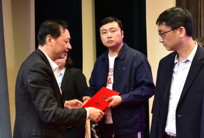 (嘉定区副区长 王浩为优秀合作企业颁发证书)