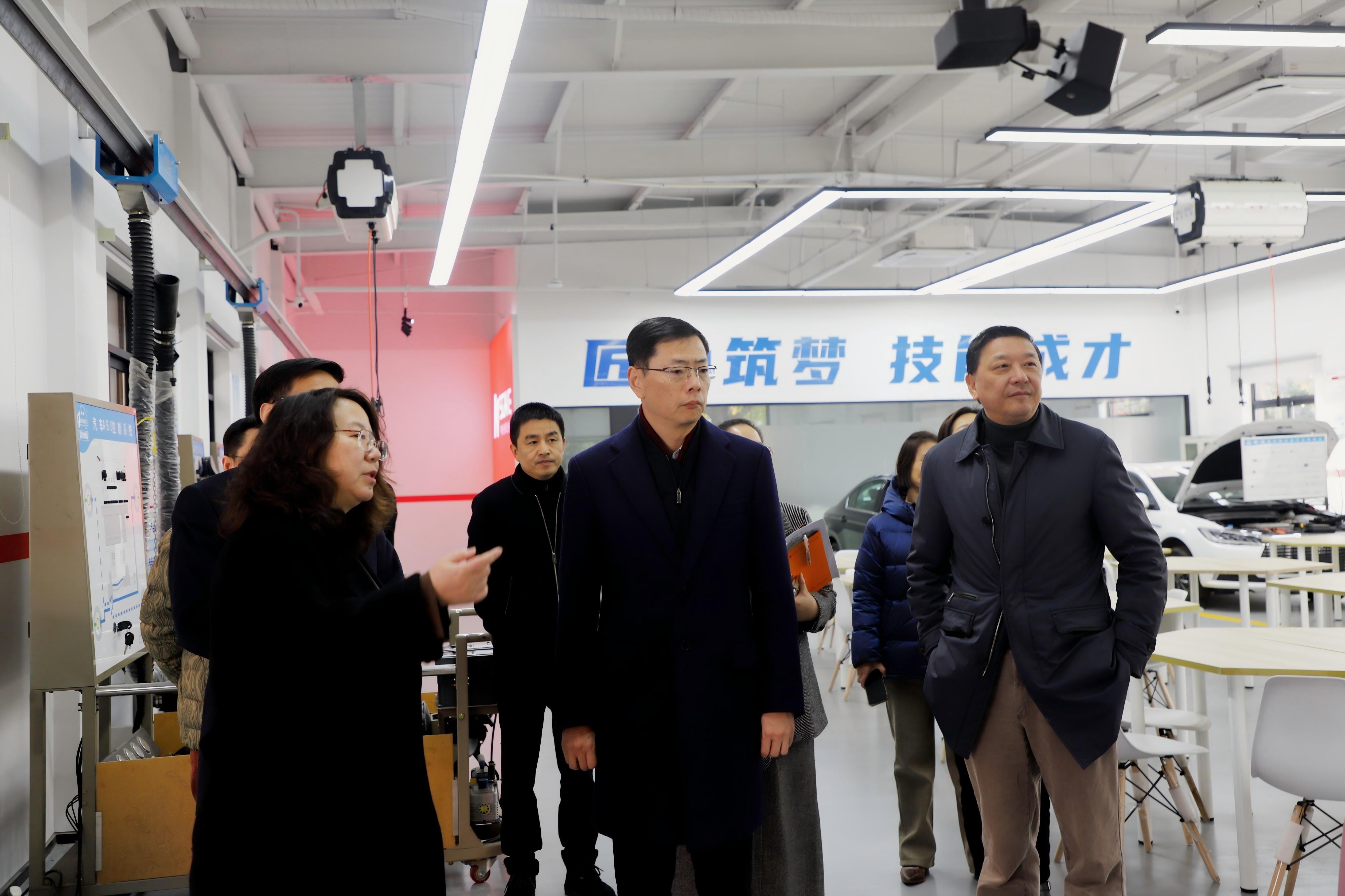 会议前,吴杰一行依次参观我校中德SGAVE先进职业教育示范中心、施耐德先进技术与未来工业教学展厅、智能安防技术应用实训中心、腾讯云人工智能产业学院、百度Apollo智能网联汽车产业学院、德国普锐米勒机床(上海)技术中心、蔚来新能源汽车产教融合实践中心、数字资源建设中心以及现代服务产业学院等多个特色教学与实训场所,详细了解我校的专业设置、育人模式、实训设施等方面的具体情况。