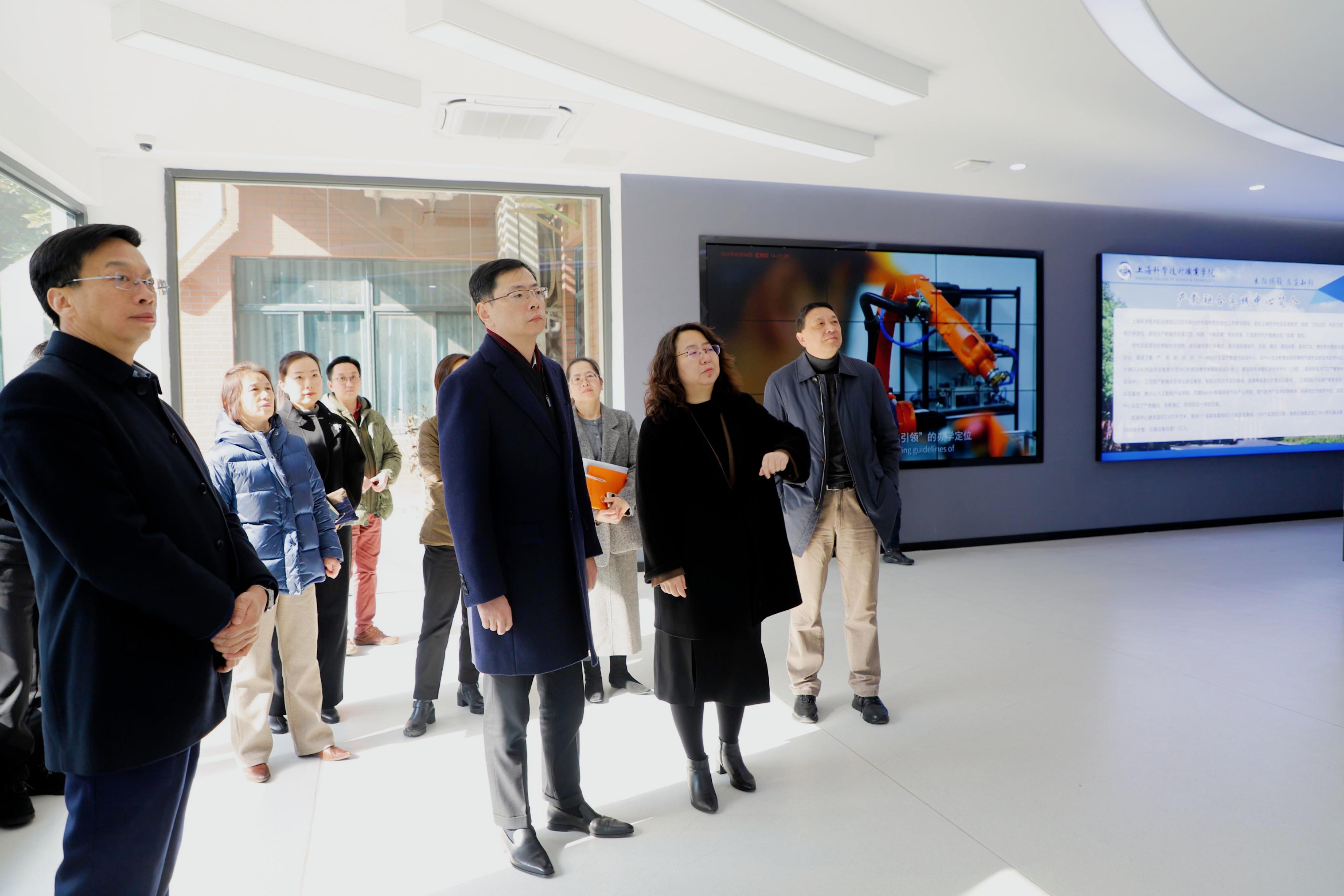 2月6日下午,嘉定区委副书记吴杰来校调研指导工作,实地察看学校产教融合实践中心,并进行专题交流座谈。区教育工作党委副书记、局长管文洁,区科委科协党组书记、区科委主任徐慧,区委办公室副主任王晓龙,团区委书记顾磊敏,致达集团董事长严健军,学校党委书记周胜,党委副书记、院长韩芳陪同。