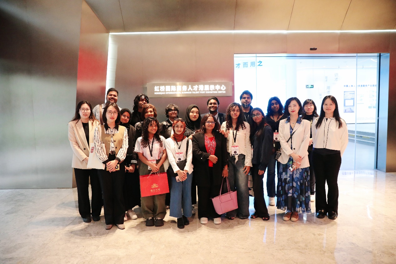 同时,马尔代夫青年还参观了我校产教融合实践中心,包括施耐德电气绿色低碳技术应用中心、腾讯云人工智能产业学院、百度Apollo智能网联汽车产业学院等,近距离感受中国在数字技术与职业教育领域的创新成果。此外,学员们还前往虹桥国际中央商务区,深入了解了上海的经济发展。