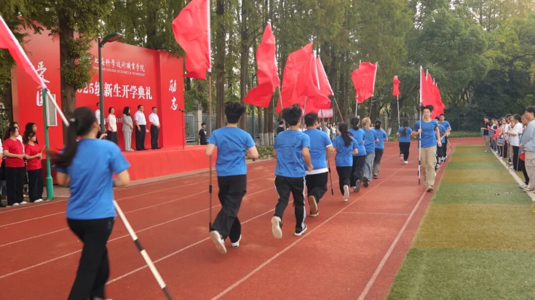 当旗手们绕着操场奔跑,20面红旗紧随其后,这不仅是青春的律动,更是新生们“向未来出发”的宣言!
