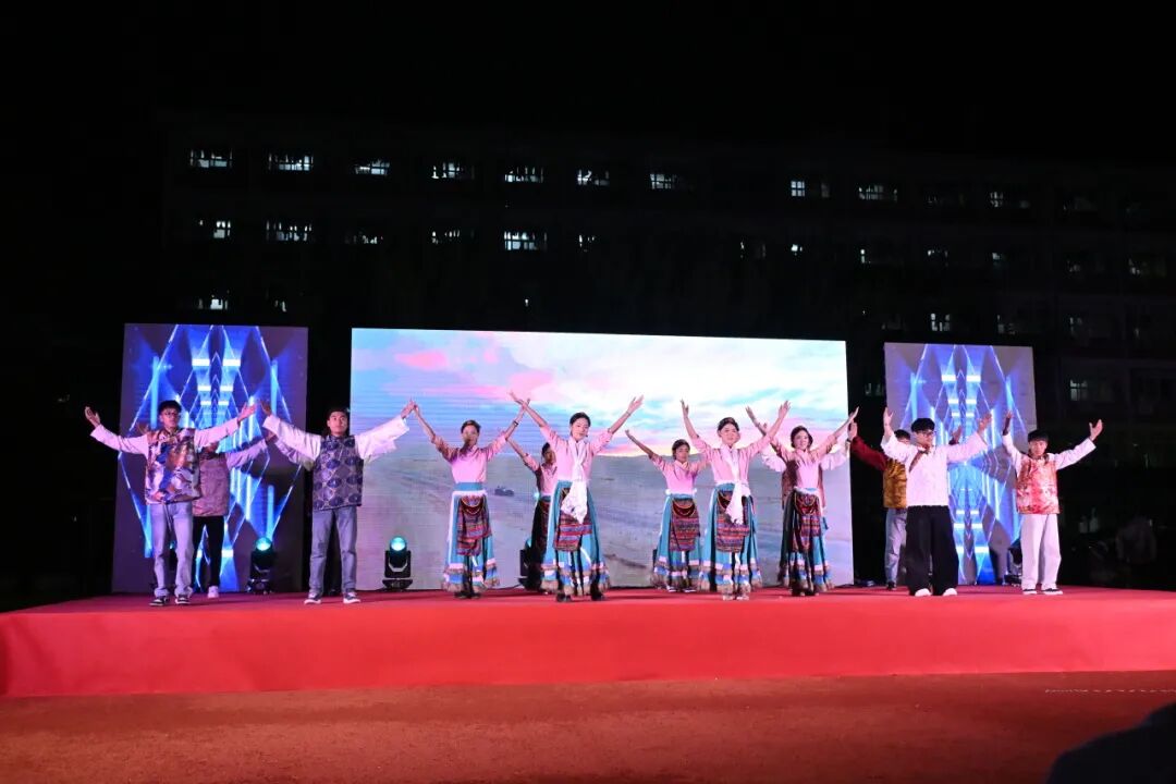 晚会以“青年新声”宣讲朗诵《山河不会忘记》拉开序幕,音爱社《一路向北》动感开唱,瞬间点燃现场。“校长陪你过生日”环节,领导与新生代表共庆生辰,让新生感受校园温暖。
