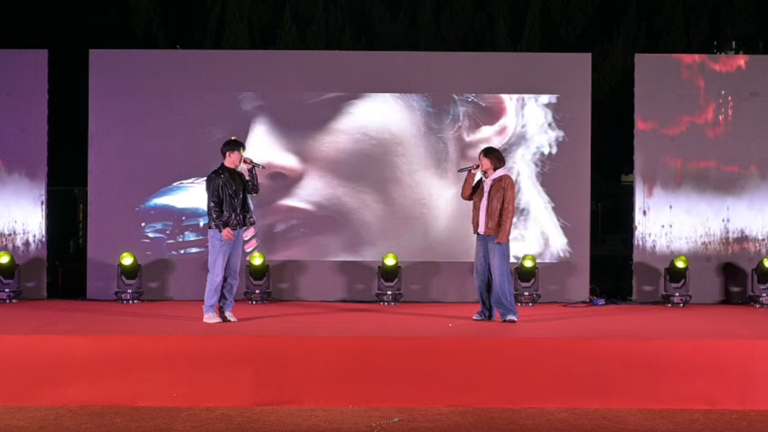 晚会接近尾声,但青春的邀约从未停止,主持人现场预热“一二·九”科技文化艺术节:这是纪念“一二·九”爱国运动、展现科院人风采的年度盛会,无论是否有才艺,只要有热情,都能报名参与!扫描屏幕二维码即可加入预热群聊,活动通知、招募信息将实时更新。 去年“一二·九”的精彩仍历历在目:《乘风》舞蹈轻盈灵动、《1919年的冬天》话剧引人深思、《最好的年华》光影剧温暖治愈……今年,更丰富的活动、更广阔的舞台已备好,等待每一位科院学子绽放光芒。