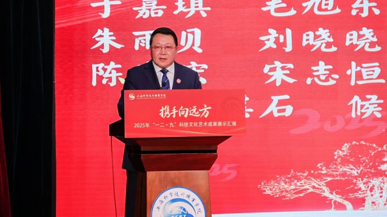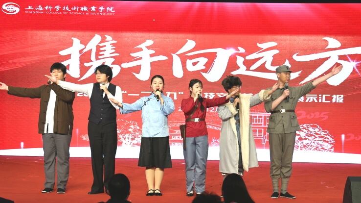 12月10日晚,上海科学技术职业学院2025年“一二·九”科技文化艺术成果展示汇报在学校报告厅举行。本次活动以“携手向远方”为主题,纪念“一二·九”运动九十周年,传承爱国主义精神,集中展示一年来学校在科技、文化、艺术育人方面的丰硕成果。