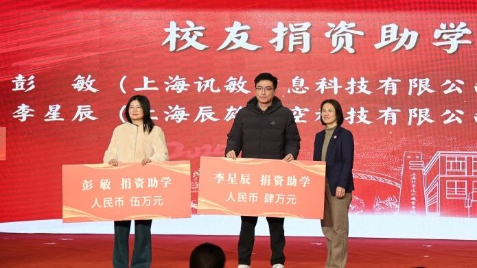 优秀校友2009届毕业生彭敏,2011届毕业生李星辰分别向学校捐赠5万元和4万元,学校党委委员、纪委书记、副院长胡晓晖代表学校接受捐赠。