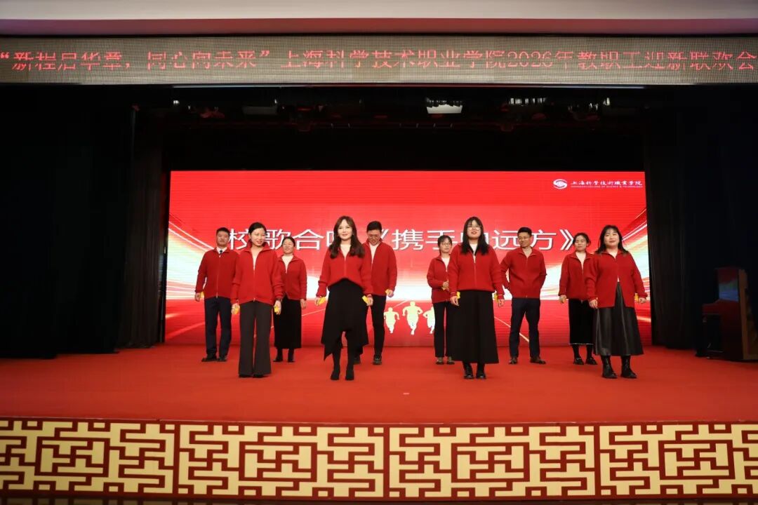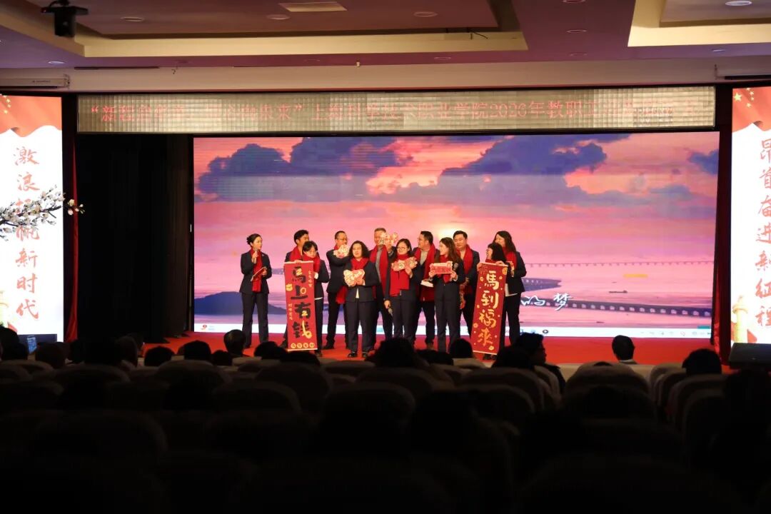 2026年1月23日下午,上海科学技术职业学院三楼报告厅洋溢着喜庆祥和的氛围,以“新程启华章,同心向未来”为主题的2026年教职工迎新联欢会在此举行。学校全体党政班子成员与全体教职工欢聚一堂,共迎新春、共话发展、共启新程。