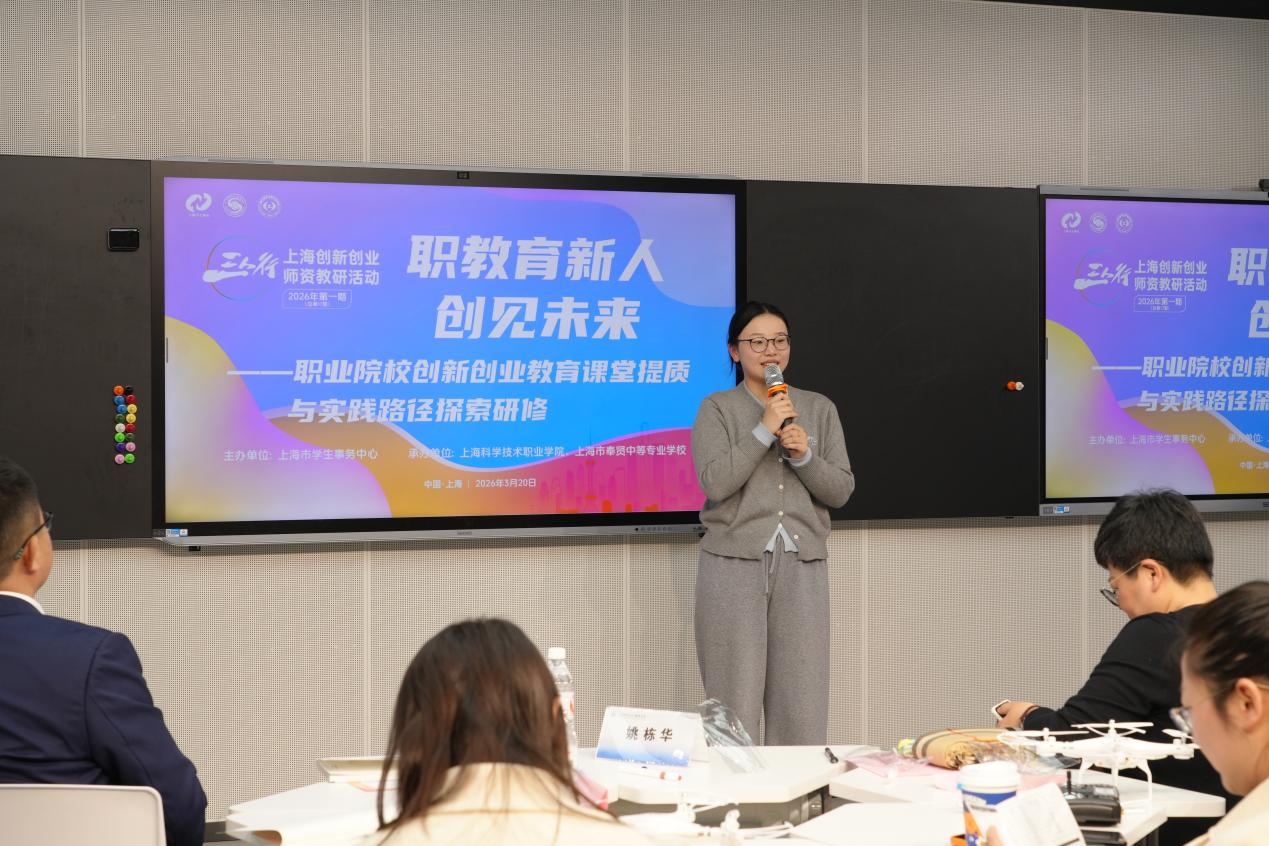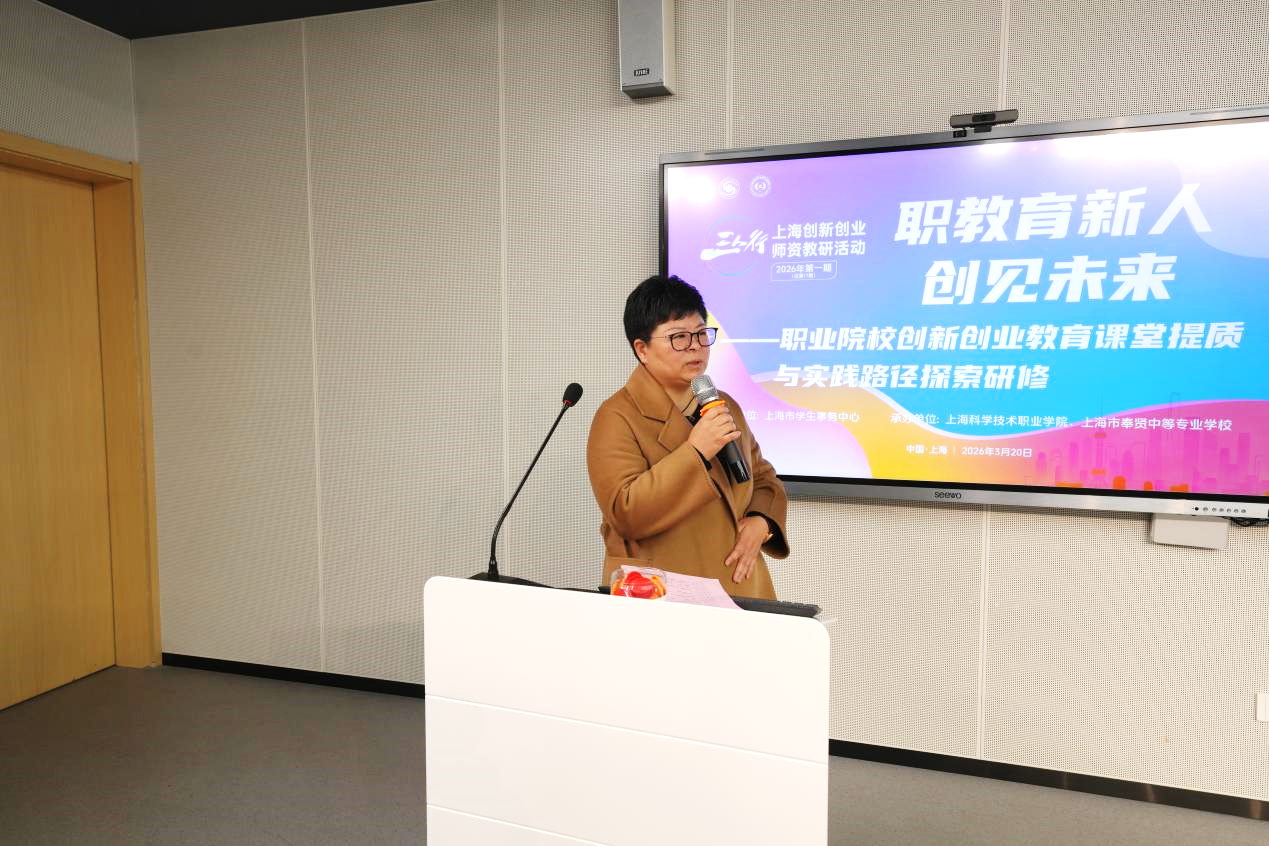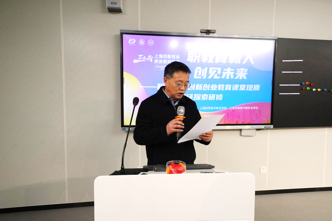 为深入推进职业院校创新创业教育改革,提升课堂教学质量与实践育人水平,2026年,由上海市学生事务中心主办,上海科学技术职业学院、上海市奉贤中等专业学校联合承办的“三人行”上海创新创业师资教研活动2026年第一期(总第17期)在上海科学技术职业学院顺利举行。本次活动以“职教育新人·创见未来”为主题,汇聚全市职业院校创新创业教育领域骨干教师、行业专家共同交流研讨。
