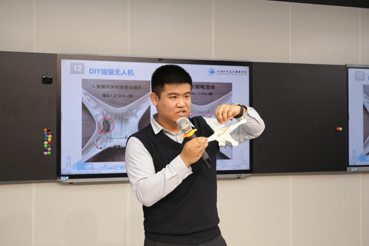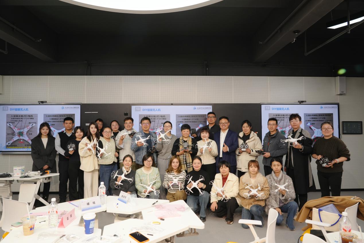 下午的实践工作坊与磨课工坊环节,将理论学习与动手实践深度结合,氛围热烈、成效显著。中国国际大学生创新大赛国赛银奖项目负责人、上海科学技术职业学院智能制造工程学院教师王凌开展「低空创想」无人机创新应用工作坊教研活动。王凌老师结合自身项目经验,系统讲解无人机创新应用场景、技术原理与教学转化方法,随后现场指导参会教师亲手组装、调试、制作无人机,让原本抽象的创新创业实践课变得可操作、可复制、可推广,帮助老师们快速掌握无人机创新课程的教学要点与实操技能。